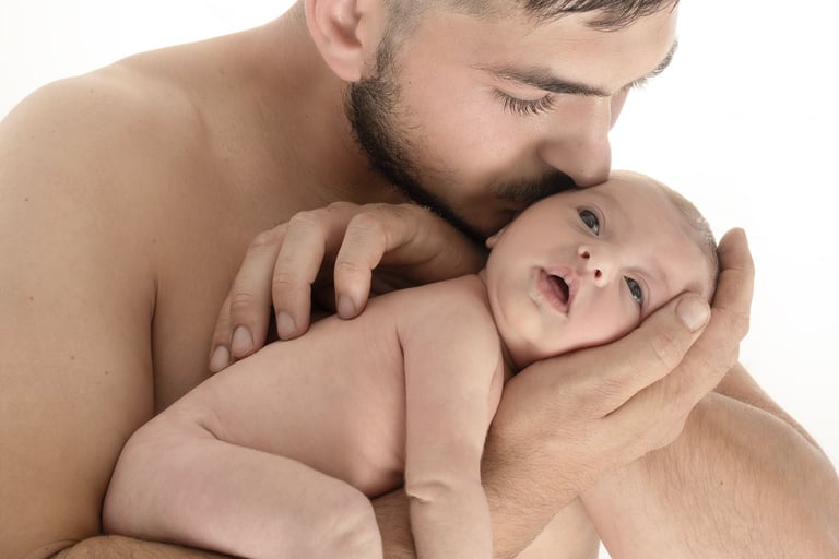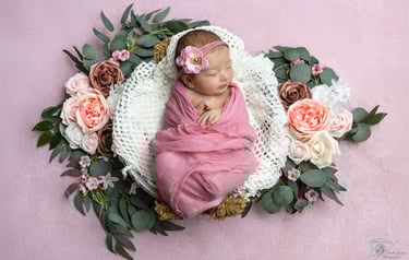 Studio mobile installé chez vous : fonds noir ou blanc pour des portraits intemporels et graphiques du bébé emmailloté, ou style lifestyle naturel dans votre univers quotidien (câlins sur le canapé, lumière douce de vos fenêtres). Flexibilité totale selon vos envies, toujours dans la sécurité et le respect du rythme de votre nouveau-né.